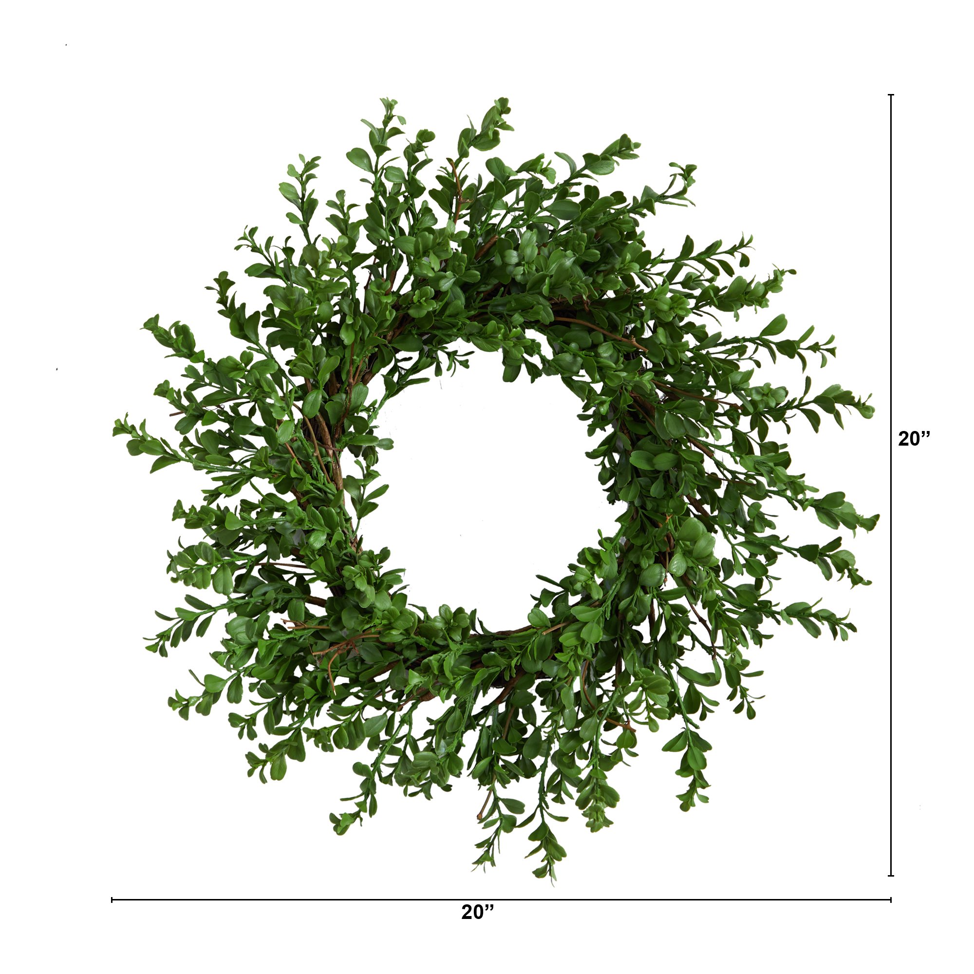 This versatile artificial boxwood wreath is a modern take on the traditional seasonal decor. Its delicate, luxurious deep green leaves are trimmed to perfection and will stay green for years to come. Create a captivating holiday display by wrapping it with bright lights or festive trinkets and place it above your mantel or on the wall in your home entryway.
