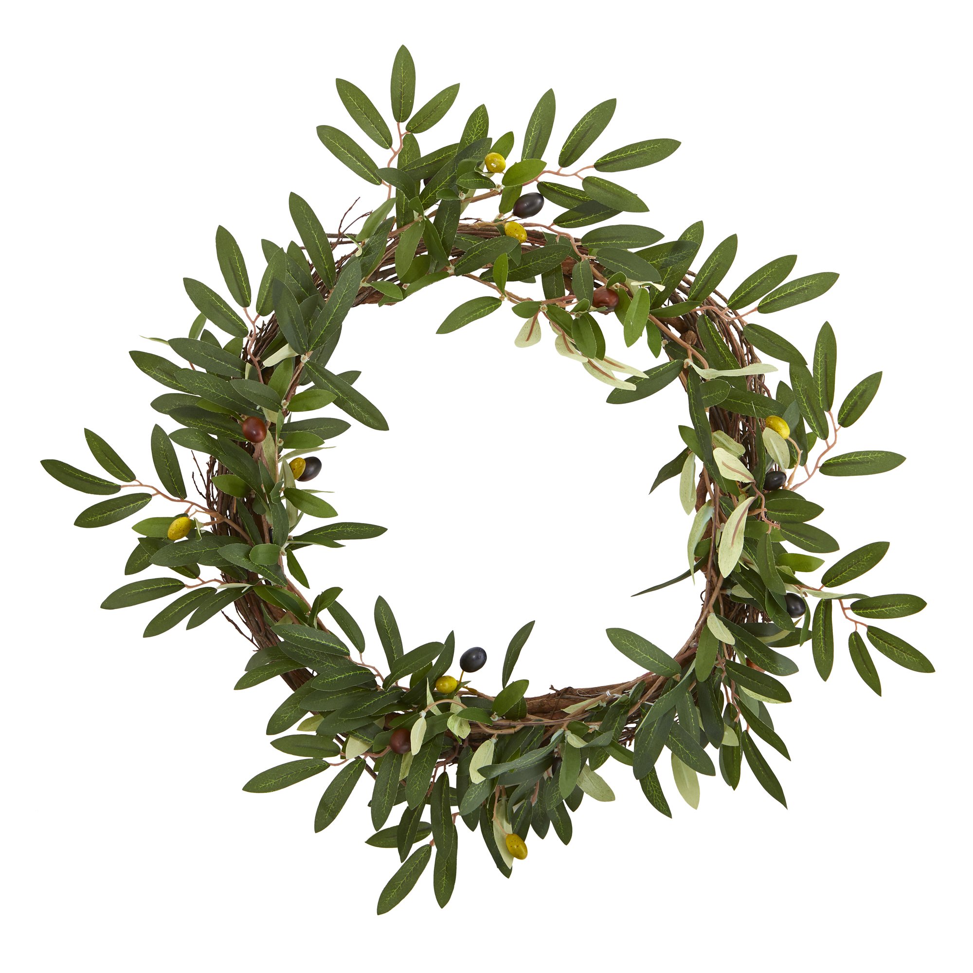 Elevate the entrance(s) and exit(s) of your home with this artificial wreath boasting an overgrowth of realistic looking olive greenery, designed with naturally occurring details and accented throughout with lifelike olive berries. Perfect for year-round display, this 23ö round artificial wreath can easily transform any wall space - no maintenance required.