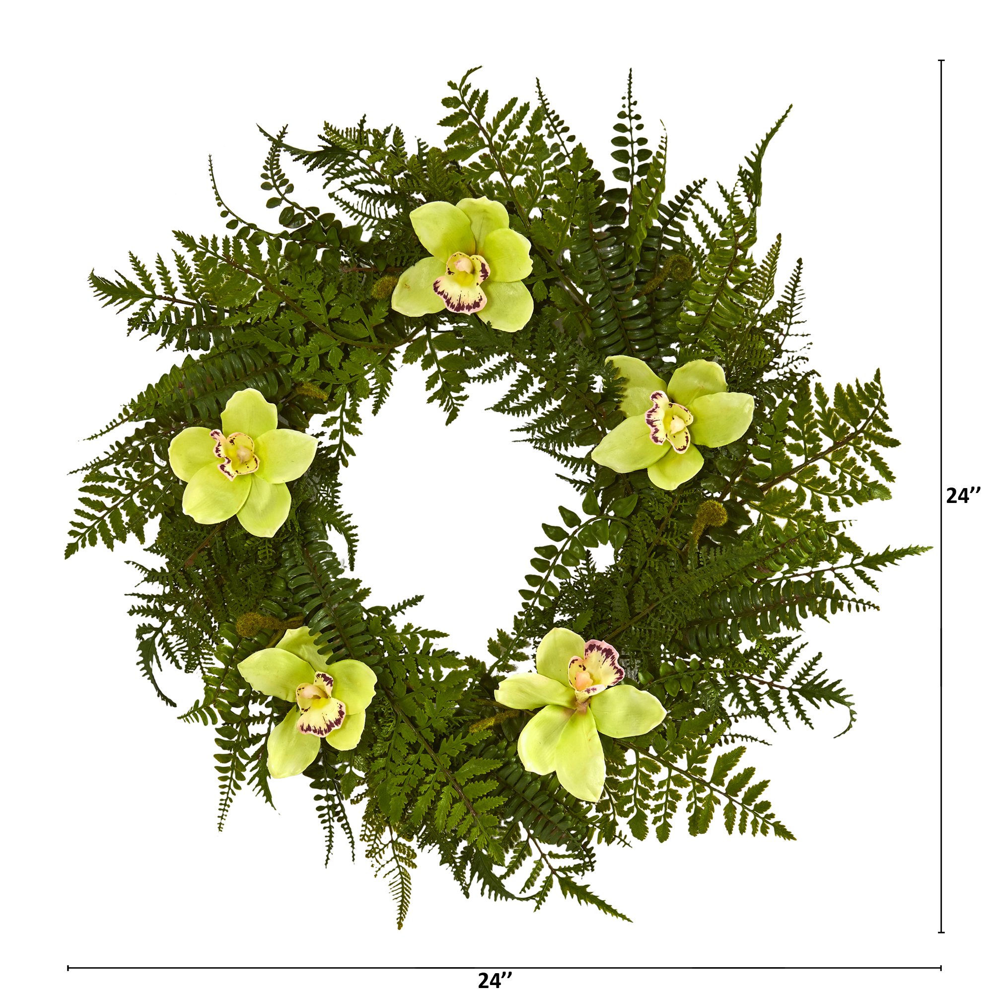 Mixed Fern and Cymbidium Orchid Artificial Wreath