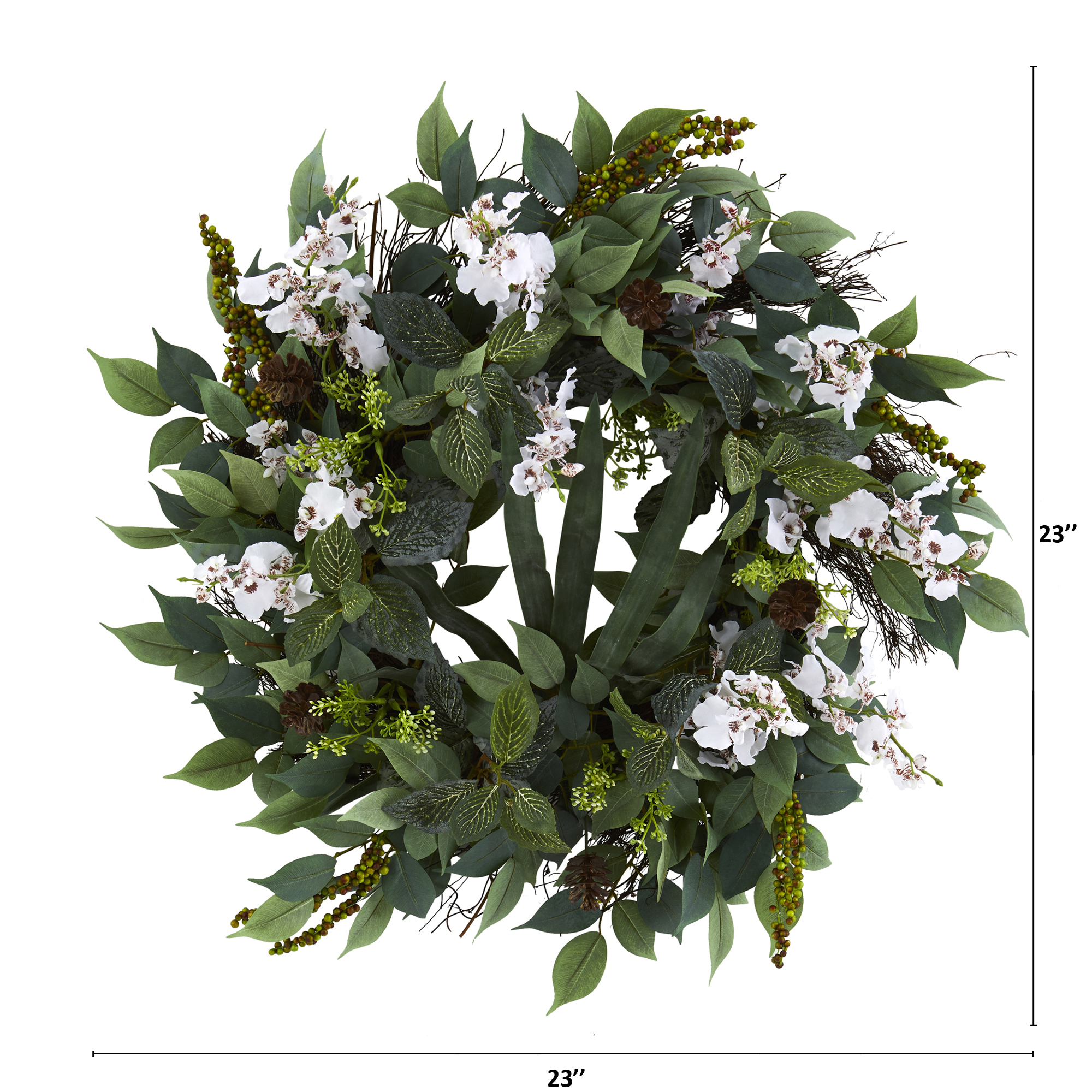 Mixed Greens and Dancing Lady Orchid Artificial Wreath Mixed Greens and Dancing Lady Orchid Artificial Wreath