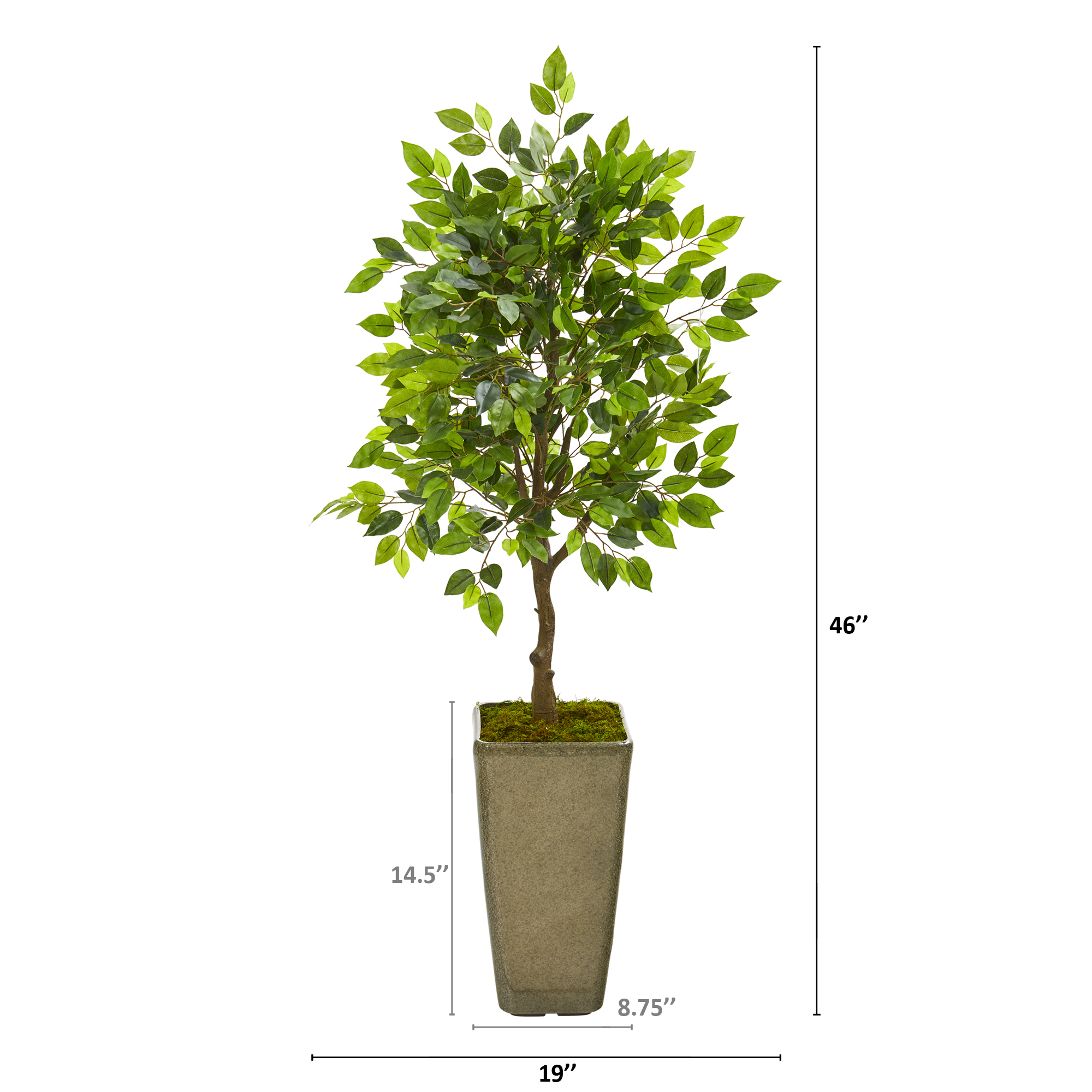 Incorporate a natural sense of greenery throughout your favorite living spaces with the help of this artificial ficus tree flaunting a rich collection of realistic foliage in bright, vivid hues. Standing 37ö tall from a green planter nestled with natural moss, itÆs perfect for injecting freshness into bare, tight spaces.