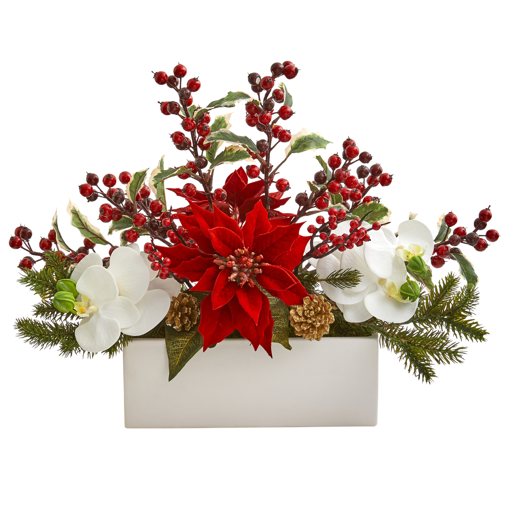 Phalaenopsis Orchid Poinsettia Holly Berry Arrangement