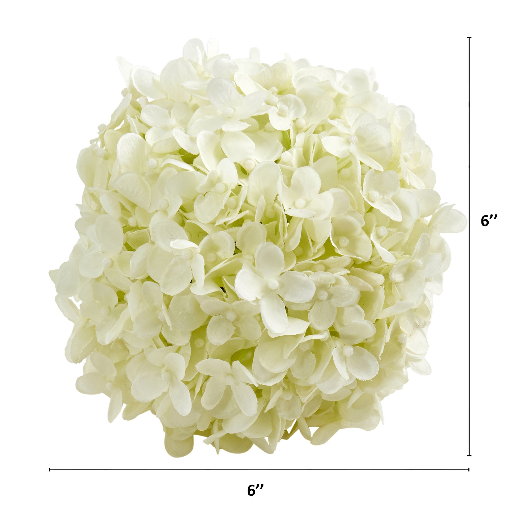 Add touches of femininity to your home decor with this set of four artificial hydrangea balls. Designed in perfectly shaped spheres composed of intricate little blooms, each 6ö round arrangement is elegant whimsy at its finest. Great for incorporating in personalized wedding decor.