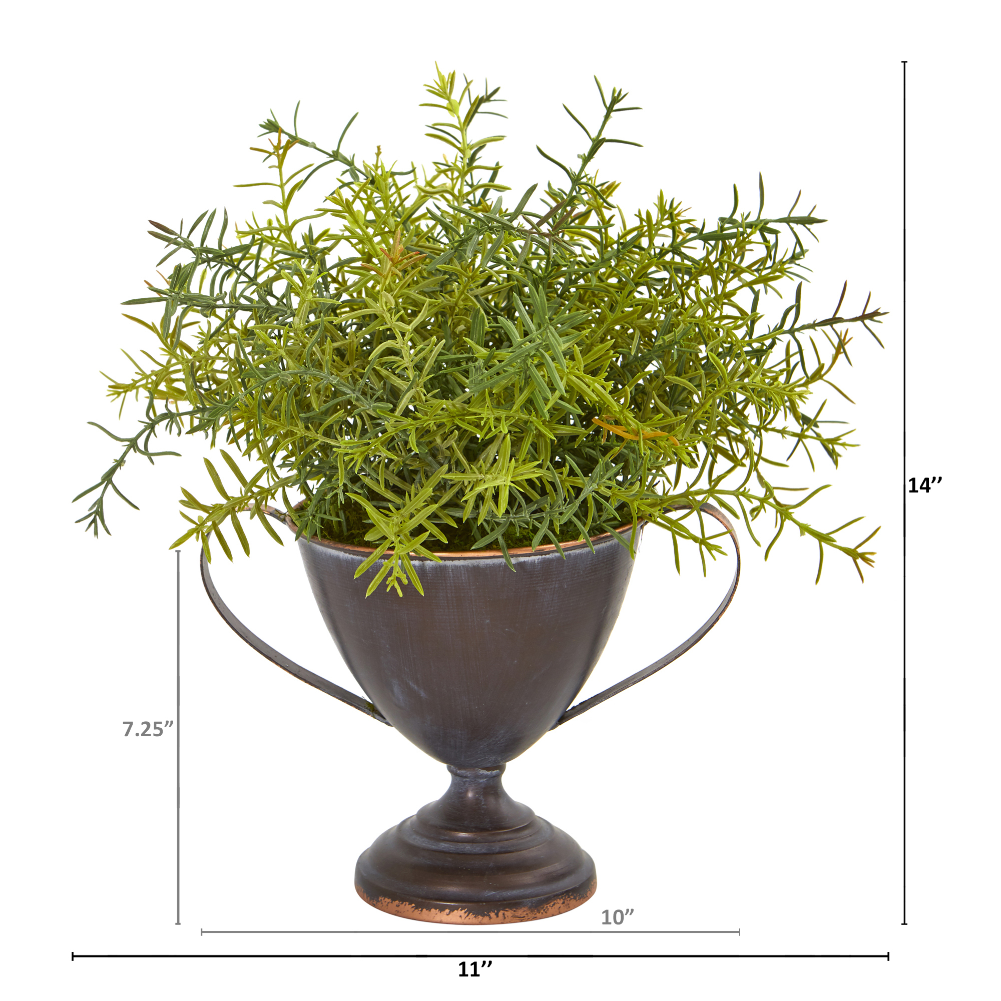 Add subtle hints of everlasting foliage with the help of this artificial rosemary plant consisting of several realistic branches, each flaunting lifelike greenery throughout its little leaves. Standing 14ö tall from a metal goblet, it would instantly dress up a bare kitchen counter.