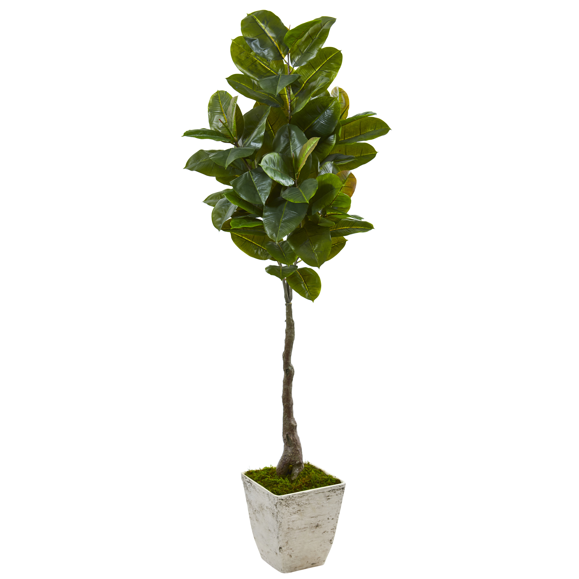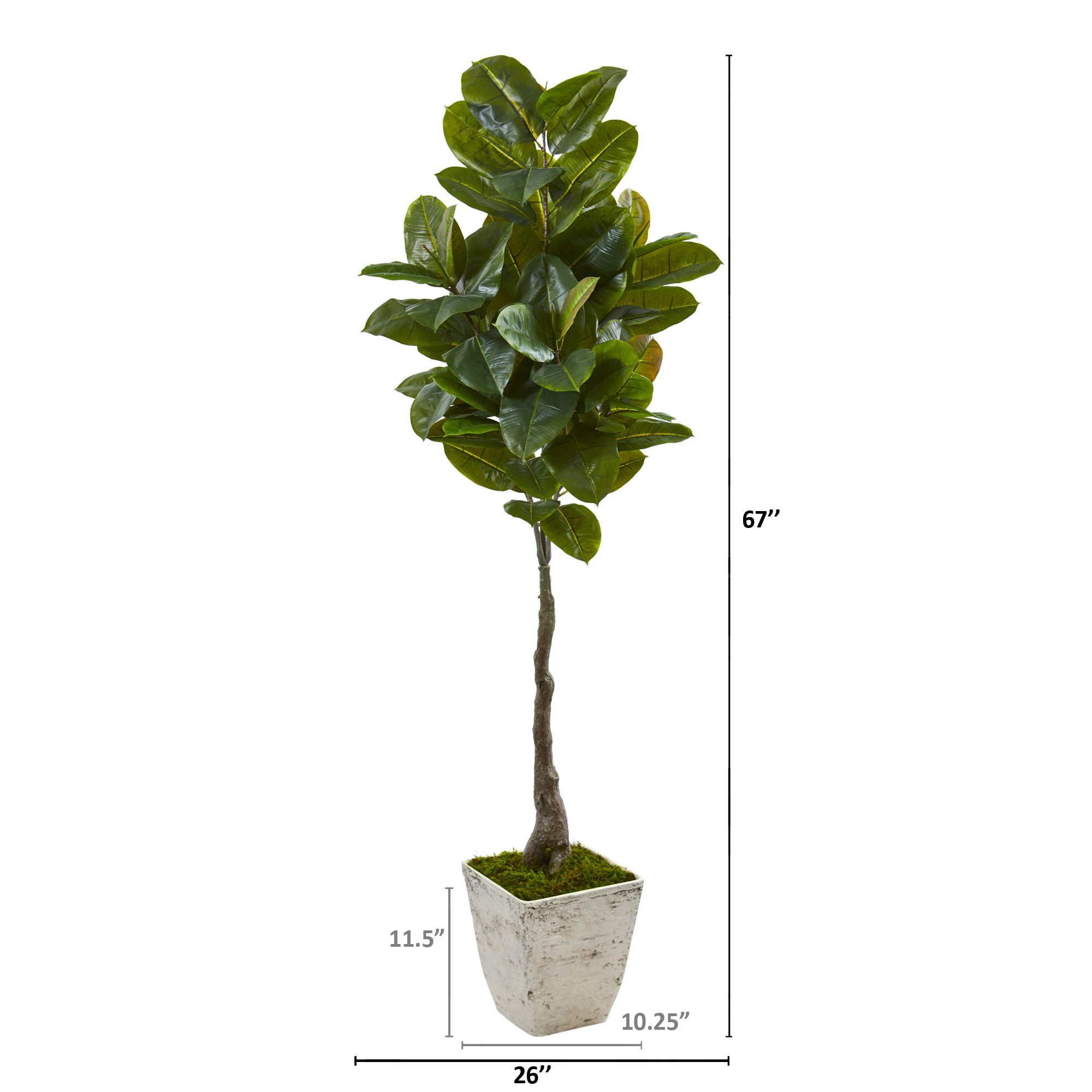 Use color to add dimension to everyday spaces with the help of this artificial rubber leaf tree showcasing several carefully detailed leaves in naturally occurring coloration - all that feel real to the touch. Standing 67ö high from a white planter, this silk tree can easily transform any space it inhabits.